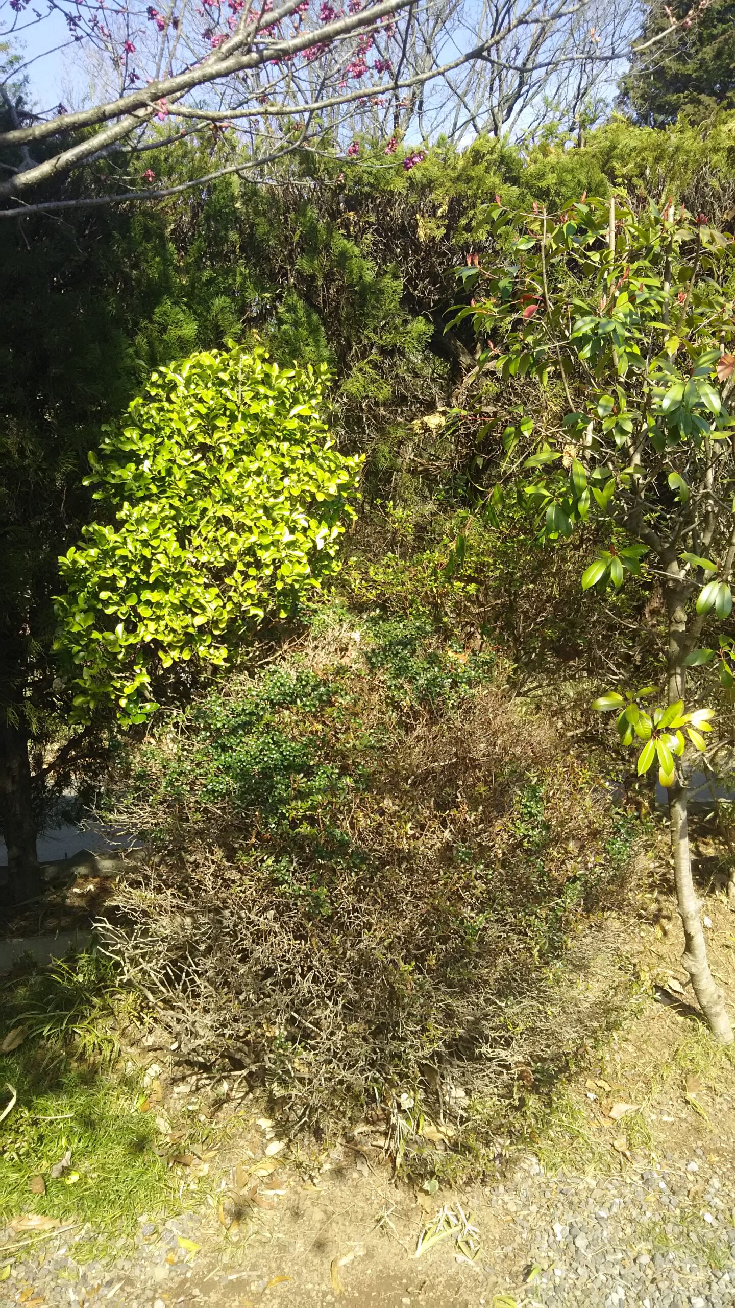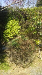 お庭の壁の際に植えていた植木を伐根いたしました。