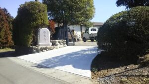 お庭に生い茂った雑草を刈り、整地、敷砂利いたしました。