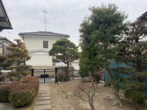 お庭に生い茂った雑草を刈り、整地、敷砂利いたしました。