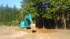 お庭に生い茂った雑草を刈り、整地、敷砂利いたしました。