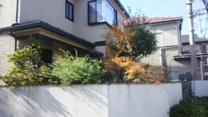 お庭の壁の際に植えていた植木を伐根いたしました。