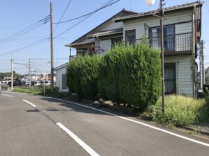 お庭の壁の際に植えていた植木を伐根いたしました。
