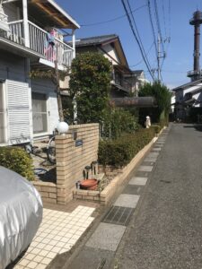 お庭の壁の際に植えていた植木を伐根いたしました。