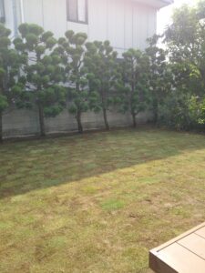 お庭に生い茂った雑草を刈り、整地、敷砂利いたしました。