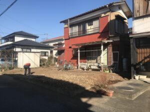 お庭の壁の際に植えていた植木を伐根いたしました。