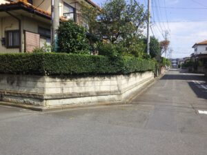 お庭の壁の際に植えていた植木を伐根いたしました。