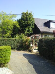お庭に生い茂った雑草を刈り、整地、敷砂利いたしました。