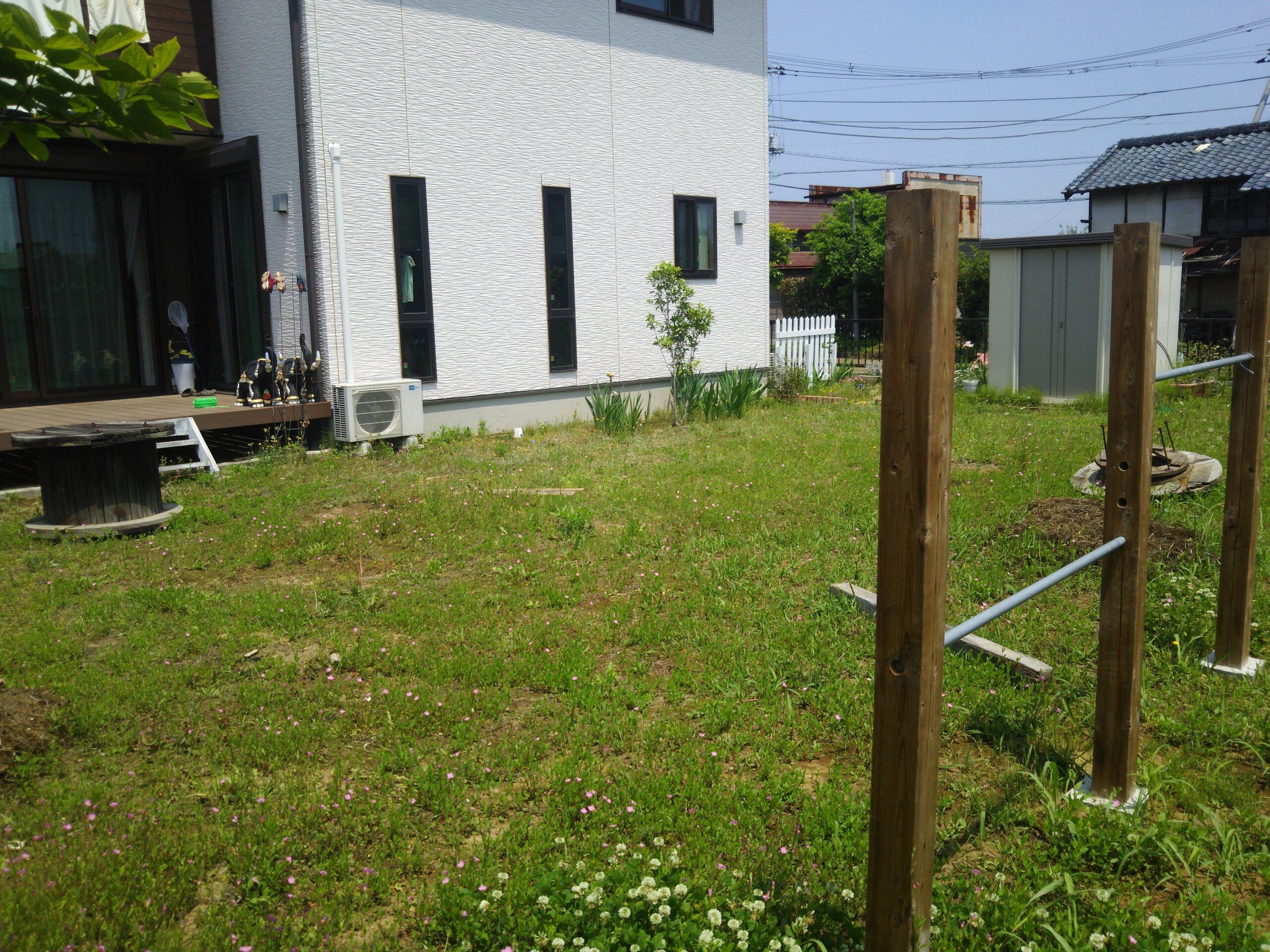 お庭に生い茂った雑草を刈り、整地、敷砂利いたしました。