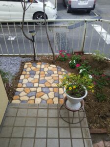 花壇と砂利敷きの施工を行いました。